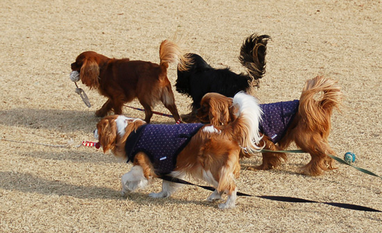 我が家の戻って・・暖ママに甘える4頭w 重いよ