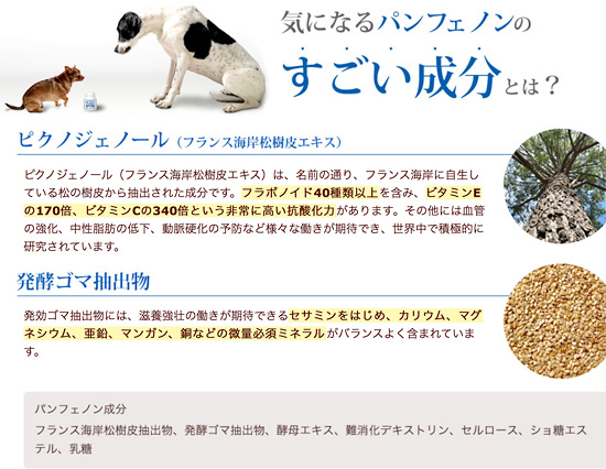 パンフェノンという犬の心臓病サプリで検索すると